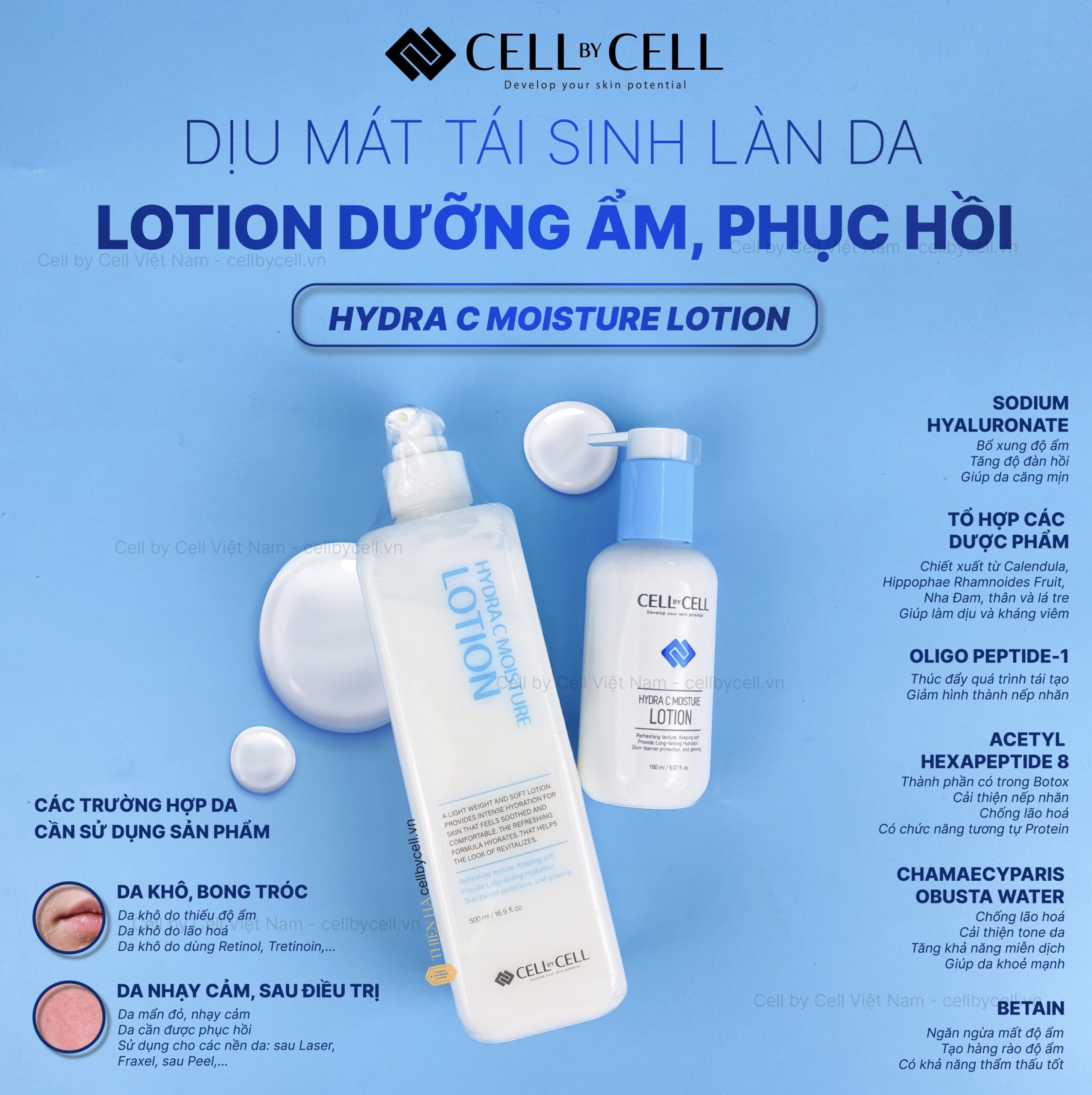 Lotion dưỡng ẩm – Hydra C Moisture Lotion Cell by Cell giúp cải thiện làn da thiếu sức sống, giúp da khoẻ mạnh, chăm sóc làn da bị tổn thương do tình trạng khô da